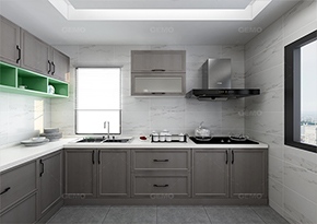 是指厨房中存放厨具以及做饭操作的平台。由柜体、柜门、台面、地脚、五金配件、功能配件、灯具等组成